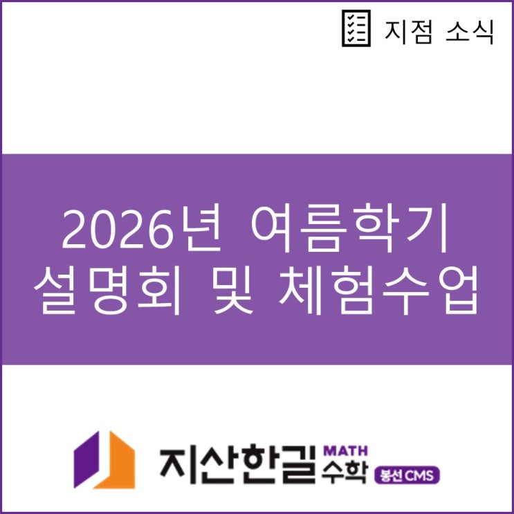 [지산한길수학 봉선CMS] 2026년 여름학기 설명회 및 체험수업