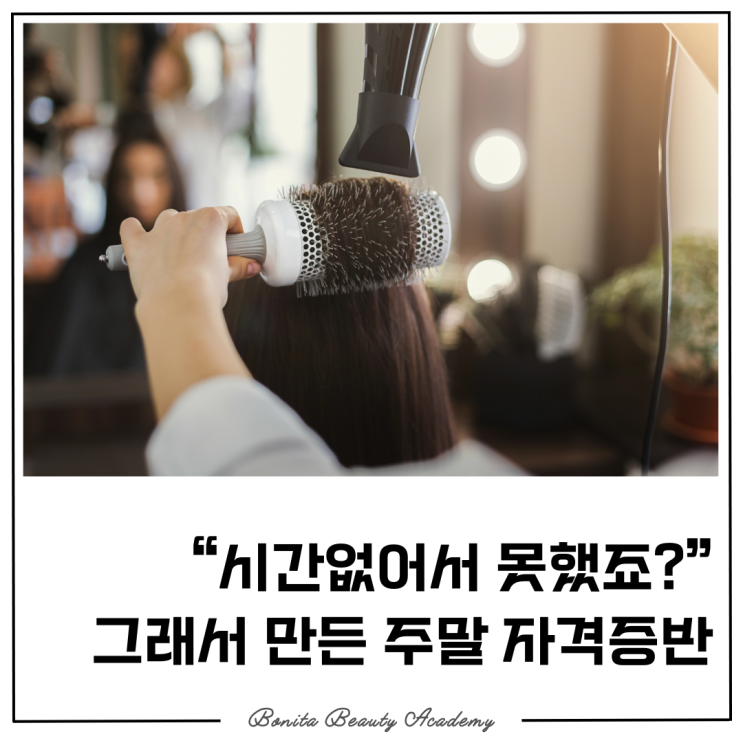 미용사(피부) 미용사(일반) 주말반 모집 안내 안녕하세요. 광주미용학원 보니따뷰티아카데미 입니다. 평일에는 시간이 없어 자격증을 미루고 계셨나요? 이제는 주말만 활용해 충분히 준비할 수 있습니다. 직장인, 학생, 육아 중인 분들까지 누구나 부담 없이 시작할 수 있는 주말 집중 과정을 소개드립니다. 주말반이 특히 좋은 이유 ✔️ 평일 출근, 학업, 육아 병행 가능 ✔️ 주2회 수업으로 자격증 취득 집중 ✔️ 주말 몰입형 수업으로 실력 향상 속도 ↑ ✔️ 직장인 · 주부 · 학생 모두 수강 가능 시간 때문에 포기했던 분들에게 최적의 선택입니다. Part.1 ✔️ 미용사(피부) 주말반 모집 교육기간 : 2026년 4월 25일 ~ 8....... <img src="https://blogthumb.pstatic.net/MjAyNjA0MTZfNzgg/MDAxNzc2MzA2MjExNTgy.l9jqCqz81KFe7HsgvajnKPTLvs6cjUClaUhSghEloS8g.SIdspKzoqSVm7Oa9DsVuNzMm84km6dwoyPokL1U8cYQg.PNG/%BF%CE%BD%CC%BD%E6%B3%D7%C0%CF__%2831%29.png?type=s3" />