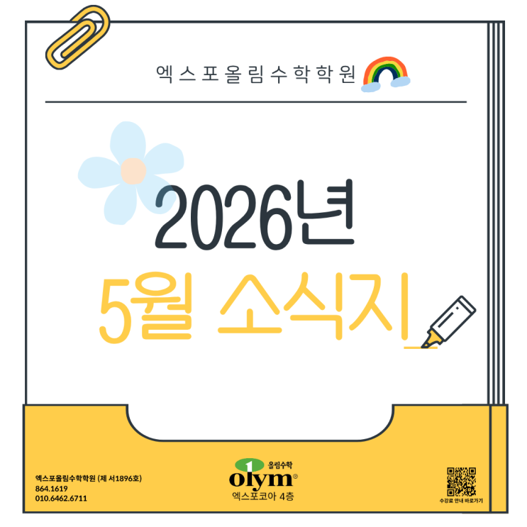 [전민동 수학학원 엑스포올림수학] 2026년 5월 소식지 입니다.