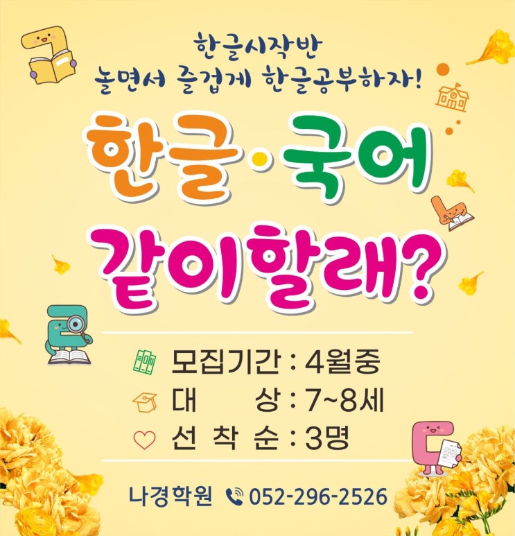 국어, 한글 공부를 함께할 7세, 초등1학년 모집 공고