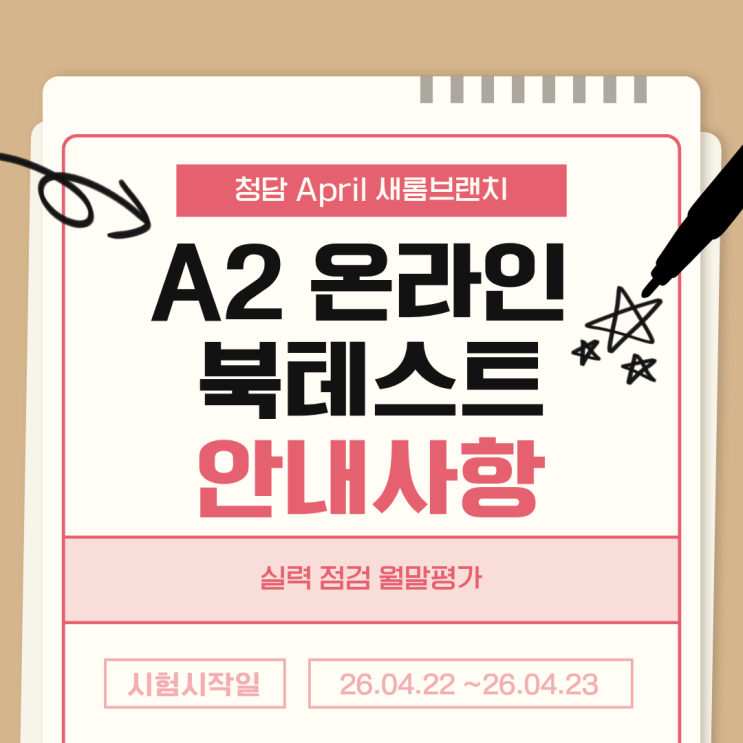 [청담April어학원 새롬브랜치] 4월 A2 Online Book Test 일정 안내