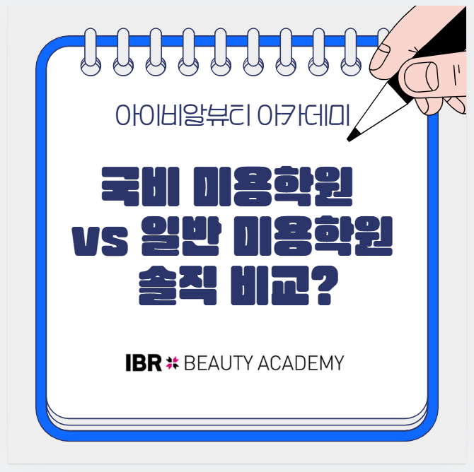 국비 미용학원 vs 일반 미용학원 솔직 비교? 안녕하세요:) 아이비알뷰티아카데미입니다 국비 미용학원 vs 일반 미용학원, 솔직하게 비교해보면? 미용을 시작하려고 할 때 가장 많이 고민하는 게 “국비로 배울까, 일반 학원을 갈까?”입니다. 둘 다 장점이 분명하기 때문에 내 목표에 따라 선택이 달라지는 게 중요합니다. ✔ 국비 미용학원 국비 미용학원의 가장 큰 장점은 "비용 부담이 적다는 점"입니다. 정부 지원을 받기 때문에 미용을 처음 시작하는 분들이나 부담 없이 배워보고 싶은 분들에게 좋습니다. 또 자격증 취득 중심으로 커리큘럼이 구성되어 있어 기초를 배우기에는 안정적인 편이에요. 다만 정해진 과정 위주로 진행....... <img src="https://blogthumb.pstatic.net/MjAyNjA0MjhfMTU3/MDAxNzc3MzcxMDU3MTA2.TQwZTjYHaEdFI23r320n_R0e_H7lRcLu2KebTzAM_f0g.lXkdM1CYFGWpvq-1LHqoHCTvwcK5gbFvEShvx0is1XEg.PNG/image.png?type=s3" />