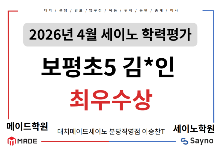 26년 4월 세이노수학학력고사 성적우수자//수내동중등수학학원