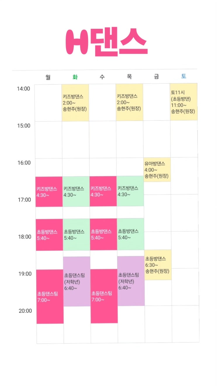 에이치댄스학원 시간표