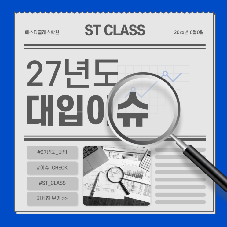 안녕하세요 :) 송탄 입시를 책임지는 송탄 입시학원 에스티클래스학원입니다! 2027년도 대입이 시작된 가운데, 무엇을 어떻게 준비해야 할지 고민인 분이 있을 겁니다. 정보를 많이 알고 준비하는 것이 대입의 확실한 성공을 만듭니다. 2027학년도 대입을 완벽하게 준비하기 위해 ST CLASS가 주요 이슈를 알려드립니다! ✔ 27년도 대입 핵심 ✔ 수시정시 모집 인원 ✔ 지역별 전형 비율 ✔ 의무 선발 전형 ✔ 준비 전략 위 내용을 중심으로 27년도 대입 이슈를 알아봅시다. 27년도는 26년도 입시 흐름이 그대로 이어지는 구조입니다. 2022 개정 교육 과정의 마지막 입시이기 때문에 각 대학의 큰 변화는 없지만, 그만큼 세부 변화에 초점을....... <img src="https://blogthumb.pstatic.net/MjAyNjA0MDhfMTY4/MDAxNzc1NjM1MDY3Mzcw.uBnLYtTn__xNLYxUWuAthBUBxN-TNMr9FFWxcMoar-Ug.IPIOwOhtUdC5YT7iPvERxTof1vysC0bpe4Vm9j6T7kgg.PNG/001_%28%3F%A0%9C%EB%AA%A9%EC%82%AC%EC%A7%84%EC%9A%A9%29.png?type=s3" />