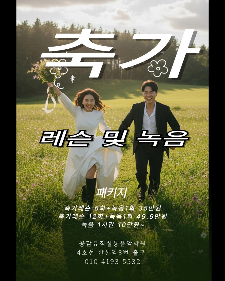안녕하세요. 철저한 보컬 과학과 검증된 데이터를 바탕으로, 당신의 목소리를 가장 빛나는 '작품'으로 만들어 드리는 공감뮤직실용음악학원입니다. 결혼식 시즌이 다가오면서 안양축가나 산본축가 레슨을 문의하시는 분들이 부쩍 늘었습니다. 친한 친구나 가족의 결혼식에서 축가를 부른다는 것은 무척 영광스러운 일이지만, 동시에 엄청난 부담이기도 하죠. 특히 요즘은 결혼식의 모든 순간이 고화질 영상으로 평생 남기 때문에 "절대 실수하면 안 된다"는 압박감이 큽니다. 오늘은 그저 "열심히 연습하세요"라는 뻔한 조언 대신, 실용음악 논문과 보컬 과학에 근거하여 '축가 무대에서 실수를 줄이는 3가지....... <img src="https://blogthumb.pstatic.net/MjAyNjA0MTRfMjc2/MDAxNzc2MTcyMTQ5MjM1.1UZq4f_eSGopuakRn28-Xe2CxhwauEK1mGRwAAnmt3gg.HHfuKRAwOY8H3cy0kUF7QawXXbJLTzXL4Vk3P7ZyQsAg.JPEG/%C3%E0%B0%A1%B7%B9%BD%BC-001.jpg?type=s3" />