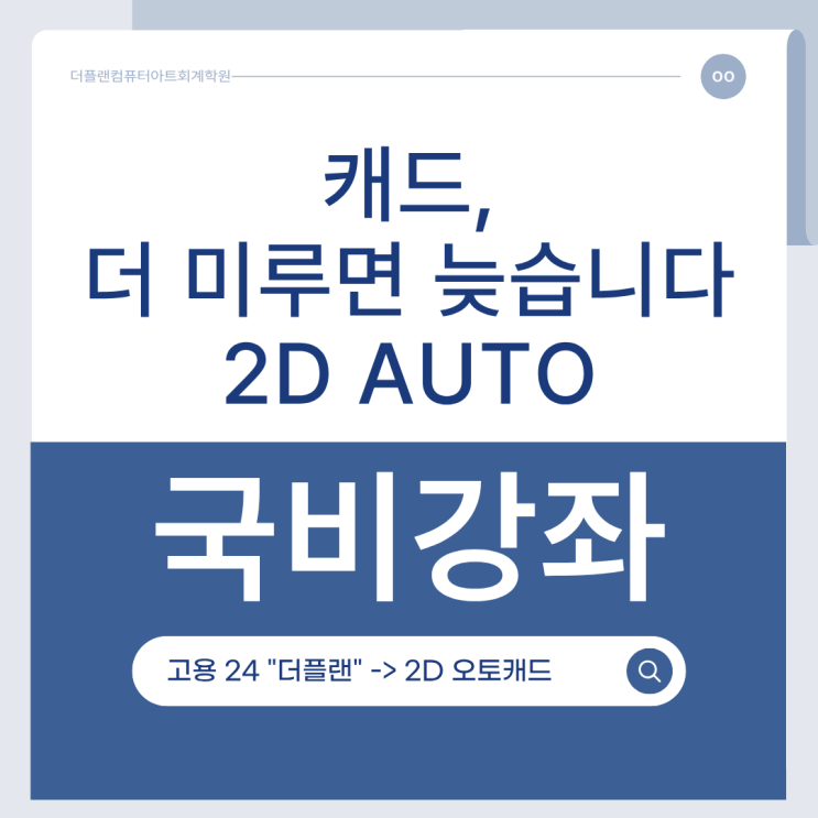 오토캐드를 배우려고 생각만 하고 계속 미루고 계신 분들이 많습니다. 막상 필요해지는 순간에는 기초부터 다시 시작해야 하는 경우가 대부분입니다. --- 오토캐드는 건축, 기계, 설계 분야에서 기본적으로 요구되는 프로그램입니다. 특히 취업을 준비하거나 관련 분야로 방향을 잡고 있다면 더 이상 미루기 어려운 부분입니다. --- 이번 더플랜컴퓨터아트회계학원 평택점에서 진행되는 2D 오토캐드 기초 과정은 기초부터 실무까지 이어지는 과정으로 실제 설계 작업에 필요한 기본기를 다지는 수업입니다. --- 과정 정보 안내드립니다. 훈련기간: 2026년 5월 7일 ~ 2026년 6월 16일 수업시간: 총 36시간 (12일 과정) 화.목 (19:00 ~ 22:00) 직장....... <img src="https://blogthumb.pstatic.net/MjAyNjA0MjBfMTc5/MDAxNzc2Njc3MzkwNjYz.daZo0PBgt5rcylwJXViU1gzshsZkOhZvdh83vHPZTsgg._SIvcUabjzmUpNC8fmUiqCDFGuxPp9JqFLZPxs-SyvMg.PNG/1.png?type=s3" />