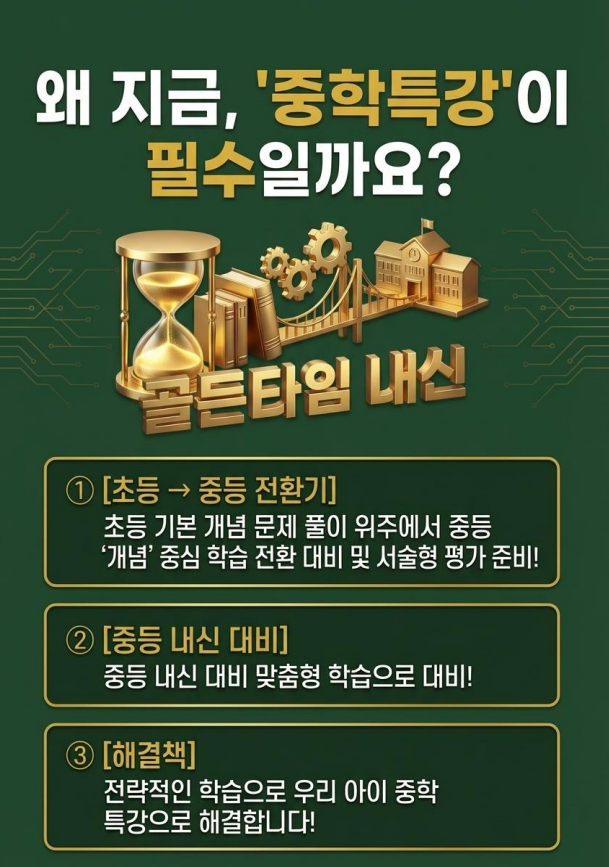 초등 6학년부터 중등까지! 흔들림 없는 내신 대비 '중학·예비중특강' 오픈