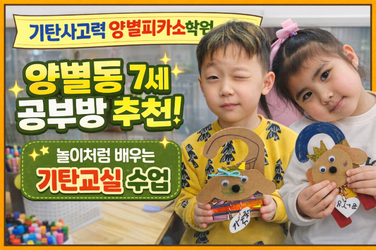 양벌동 7세 공부방 추천! 놀이처럼 배우는 기탄교실 7세 수업 이야기 7세는 초등학교 입학을 앞두고 있는 아주 중요한 시기입니다. 이 시기에는 단순히 글자를 많이 알고 계산을 빨리하는 것보다 배우는 즐거움, 집중하는 습관, 스스로 해보는 자신감을 키워주는 것이 먼저입니다. 기탄사고력양벌피카소학원에서는 7세 친구들이 놀이처럼 배우며 자연스럽게 실력을 키울 수 있도록 다양한 수업을 진행하고 있습니다. 이번 달 7세 친구들과 함께한 즐거운 수업 이야기를 소개해드릴게요. 창의사고력 수학 – 재미있게 시작하는 수학 이번 달에는 창의사고력 수학 교재를 활용해 숫자와 사고력을 함께 키우는 활동을 진행했습니다. 10 알....... <img src="https://blogthumb.pstatic.net/MjAyNjA0MTdfMjQ4/MDAxNzc2Mzk0NjEyNDU2.TnLPmxd338HAtdid7GVAD8pPUKHvHBFLzQwsOh7J840g.b6xffoJQnL2KVEUOMSdaFjbzoTkqt__N6P4yqZHmiQkg.PNG/900_file_00000000053c72069ce17fccda2d20a8.png?type=s3" />