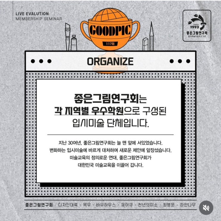 제117회 좋은그림연구회 연합평가 현장 수많은 작품과 많은 선생님들의 열정이 모인 자리 좋은그림연구회 연합평가가 현장의 뜨거운 분위기 속에서 진행되었습니다. 좋은그림연구회는 앞으로도 더 좋은 기준과 더 좋은 교육을 위 해 함께 고민하겠습니다. #좋은그림연구회 #연합평가 #천년의미소 <img src="https://blogthumb.pstatic.net/MjAyNjA0MDhfNyAg/MDAxNzc1NjIxMDY2MzU1.tTQVvm5E5xJYFizlXcWzUjJXDsmeb7ChNeMp1ipkmmsg.RIDMFwIFy-jrQS0DwyqEyNpLF4iDWm85pc1z01fUbo4g.JPEG/IMG%A3%DF6335.jpg?type=s3" />