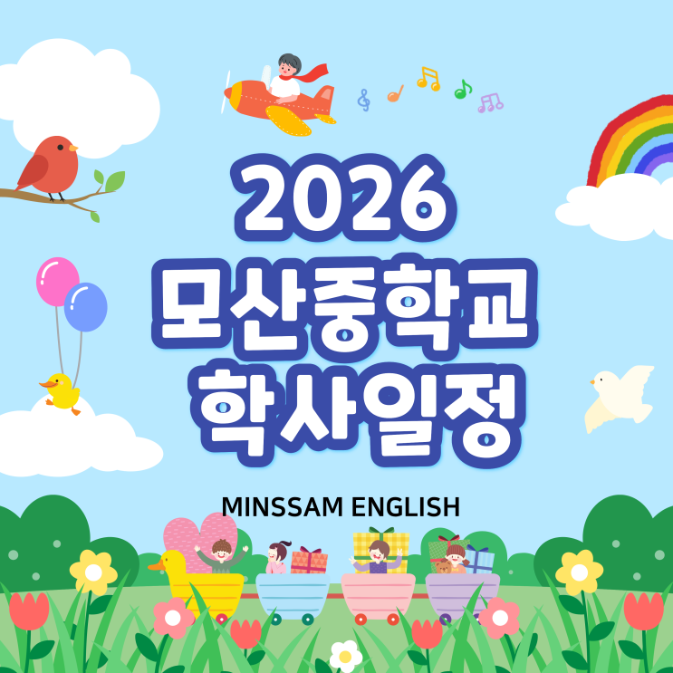 안녕하세요~ 민쌤 잉글리시의 민쌤입니다~^^* 2026년 아산 모산중학교의 1년 학사 일정 입니다! 필요하신 분들은 참고해주세요~^^* ----------------------------------------------------------------------------------------- 1학기 2학기 ------------------------------------------------------------------------------------------------------------------------ 학부모님들께서는 보통 “시험이 언제지?” 이렇게 날짜부터 확인하시게 됩니다. 그런데 실제로 아이들의 결과를 보면 차이는 시험 날짜가 아니라 준비를 시작한 시점에서 이미 만들어집니다. 그래서 학사일정은 단순히 보는 것이 아니라 ‘언제부터 준비를 시작....... <img src="https://blogthumb.pstatic.net/MjAyNjA0MDhfMTk3/MDAxNzc1NjQ1OTU1NDM1.ycSC4qQ_d-IaNRYRCDChqxRL4-nD6U9Ebk02i97XPUAg.7VBP1SJmL35HVT4r0Gv4rdrZuvFV2M3T3cwxC8ItR3Qg.PNG/%C1%A6%B8%F1%C0%BB_%C0%D4%B7%C2%C7%D8%C1%D6%BC%BC%BF%E4..png?type=s3" />