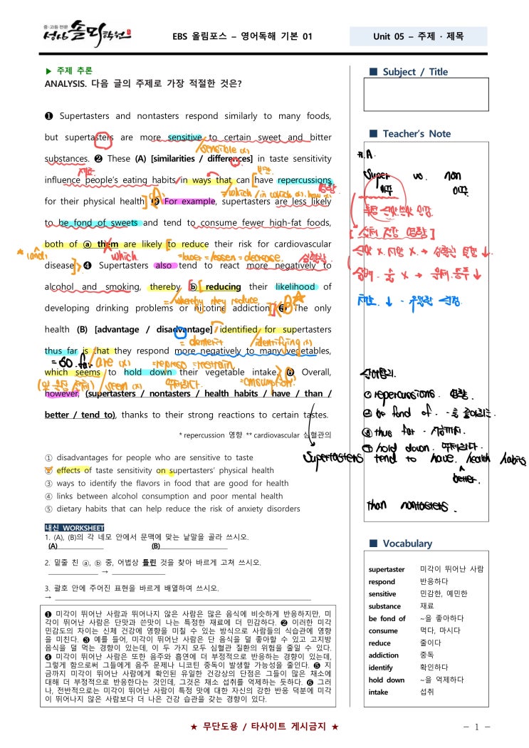 [강사이력] 연세대학교 교육학 학사 고려대학교 교육대학원 석사 많은 학부모님들이 묻습니다. “좋은 학원이란 무엇인가요?” 시설일까요? 홍보일까요? 아니면 유명한 강사일까요? 저는 단 하나라고 생각합니다. 진짜 학원의 본질은 ‘수업’입니다. 그리고 그 수업의 진정성은 결국 “수업자료”와 “수업의 질” 에서 드러납니다. 1. 수업자료에 대한 집착 (거의 ‘변태적인 수준’입니다) 제가 수업을 준비할 때 사용하는 노트입니다. 이건 단순한 필기가 아닙니다. ✔ 한 문장 단위 해석 ✔ 문법 포인트 체크 ✔ 출제 가능 포인트 표시 ✔ 함정 선지까지 미리 설계 솔직히 말씀드리면, “이 정도까지 해야 하나?” 싶은 수준으로 준비....... <img src="https://blogthumb.pstatic.net/MjAyNjA0MDhfMTEw/MDAxNzc1NTc1NDc0MjI3.YNegsa3AT6eHWkUEHKAfi2CzC2yBPUiuxFaUx58fiVog.AxBLZOWhlMTLnUIibbh4yDWJXSEgixixWwmKUlk7MK4g.JPEG/KakaoTalk_20260330_125811461_16.jpg?type=s3" />