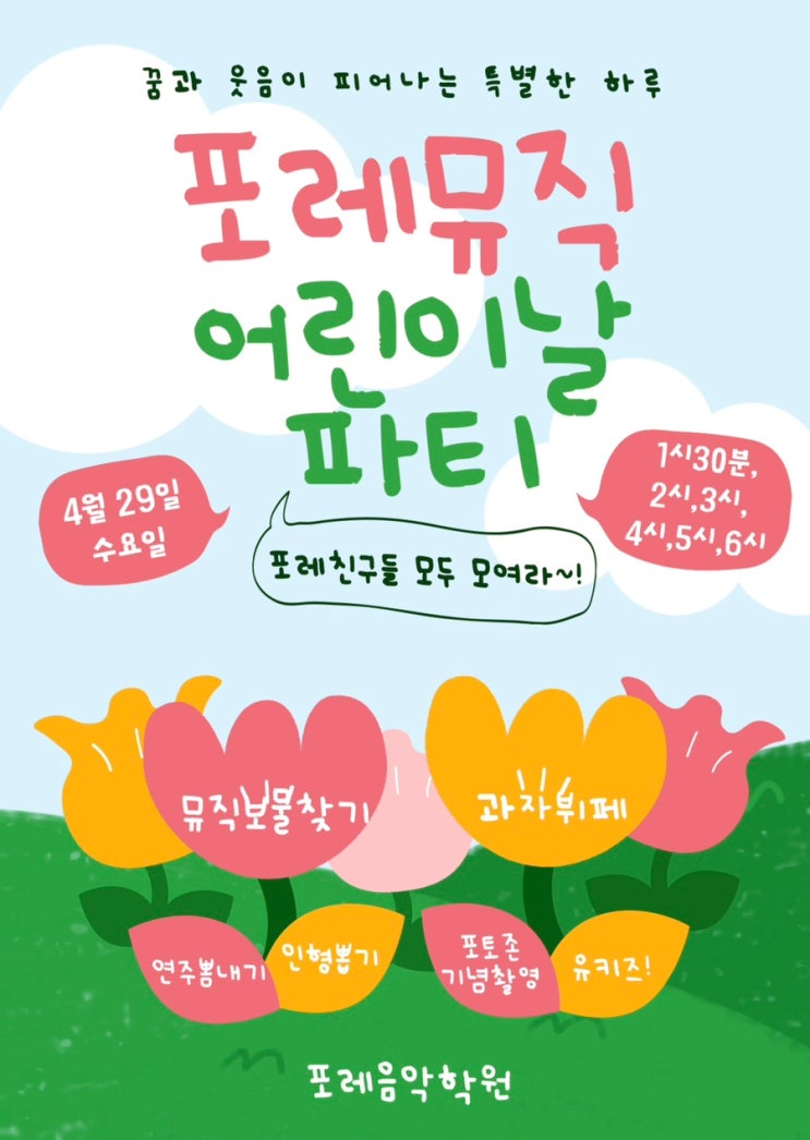 곧 다가올 어린이날을 기념하며 아이들과 즐겁게 보낼 특별한 하루를 준비했습니다. 아이들이 음악안에서 즐기고 뛰놀수 있도록 행복한 추억을 만들어 '피아노를 즐기는아이'로 만들어 보겠습니다. 많은 관심과 참여부탁드려요! #보라매공원 #서울대림초등학교 #은천초등학교 #아이교육 #관악구초등음악교육 #롯데백화점관악점 #관악구유치부음악학원 #봉천동음악학원 #서울당곡초등학교 #당곡초병설유치원 <img src="https://blogthumb.pstatic.net/MjAyNjA0MjFfOTcg/MDAxNzc2NzM4NDIzODY0.OTfEnDq8LfQV5h_JtogsMfWElBLZpdICqGdzchDI9w0g._oKdy6UVKbEl3z3vFqM08kvJFNT3mctK5B3bEUkVMtgg.JPEG/IMG%A3%DF1646.jpg?type=s3" />