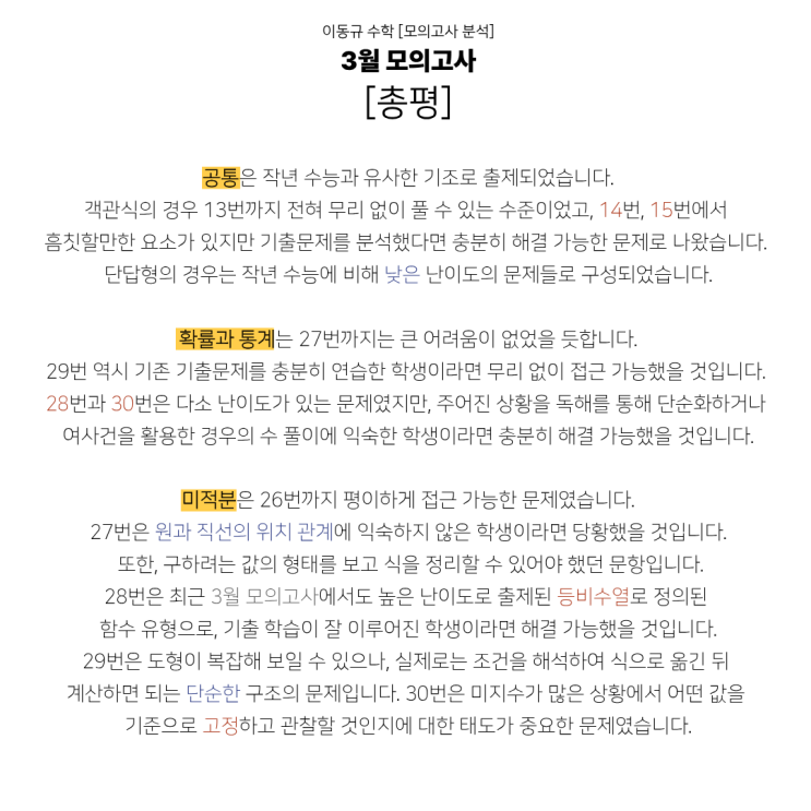 3월 모의고사 분석 및 총평