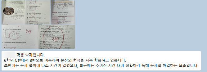 서산 영어학원 I 우리 학원은 수업 후 내용을 서로 공유하고 학부모님께 알려드리고 있습니다.