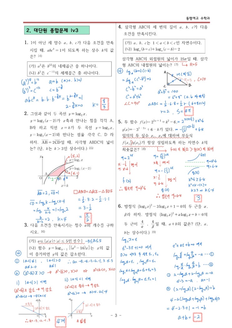 동명여고 2학년 1학기 중간고사 대비 학교 프린트 손글씨 해설입니다 수업시간에 전부 다룬 문제들이지만 난이도가 중상 이상 되는 문항들이 있어서 시험장에서 시간단축이 가능하도록 학생들에게 짧은풀이 손글씨 해설로 제작해서 PDF파일로 배부했습니다 ㅎ 이번 시험은 학교 프린트에서 많이 출제한다고 하니 짧은 풀이가 더더욱 필수입니다~ 그리고 내신은 시간싸움이라 최적화된 풀이라도 여러번 반복해서 연습하지 않으면 시간 내 풀기가 상당히 어렵죠 문항수가 꽤 많아서 만드는데 며칠 고생했지만 그만큼 학생들이 좋은 점수 받을거라 믿습니다^^ 동명여고 학프 파일 중 일부만 올려봅니다~ <img src="https://blogthumb.pstatic.net/MjAyNjA0MjdfMjcx/MDAxNzc3MjcyNDM1NTYz.LqU5t14Hp55JFmxJZJbF-FpGHmcVGHbQH93UexgnJFYg.pCbffWAwM7zP0TxoNR7H-FxWgCLghARlKvDVY3FC1LIg.JPEG/900_1777272403747.jpg?type=s3" />