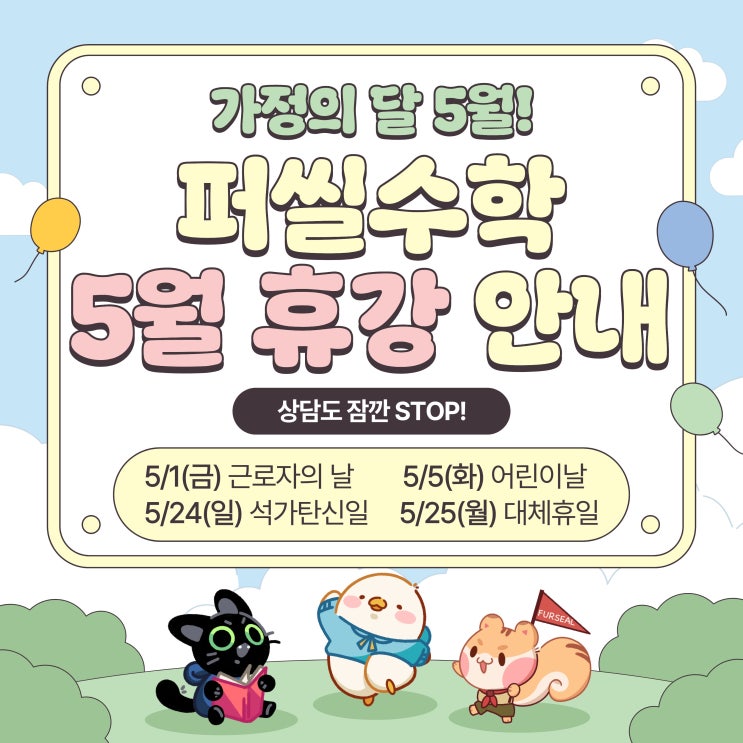 [5월 휴강 일정] 설레는 5월! 퍼씰학원 전체 휴강일 안내