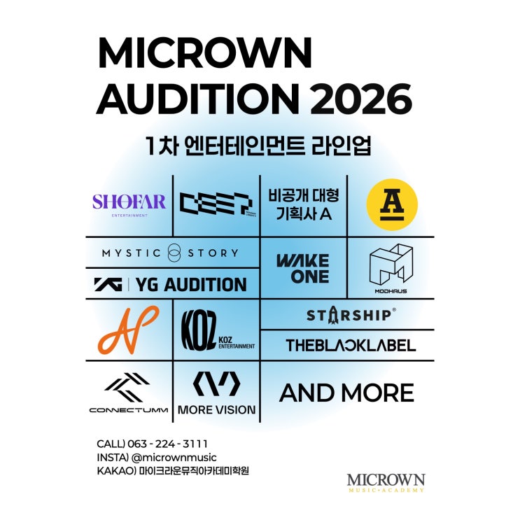 마이크라운 연합오디션 2026 1차 엔터 라인업 | 전주오디션학원 | 마이크라운뮤직아카데미
