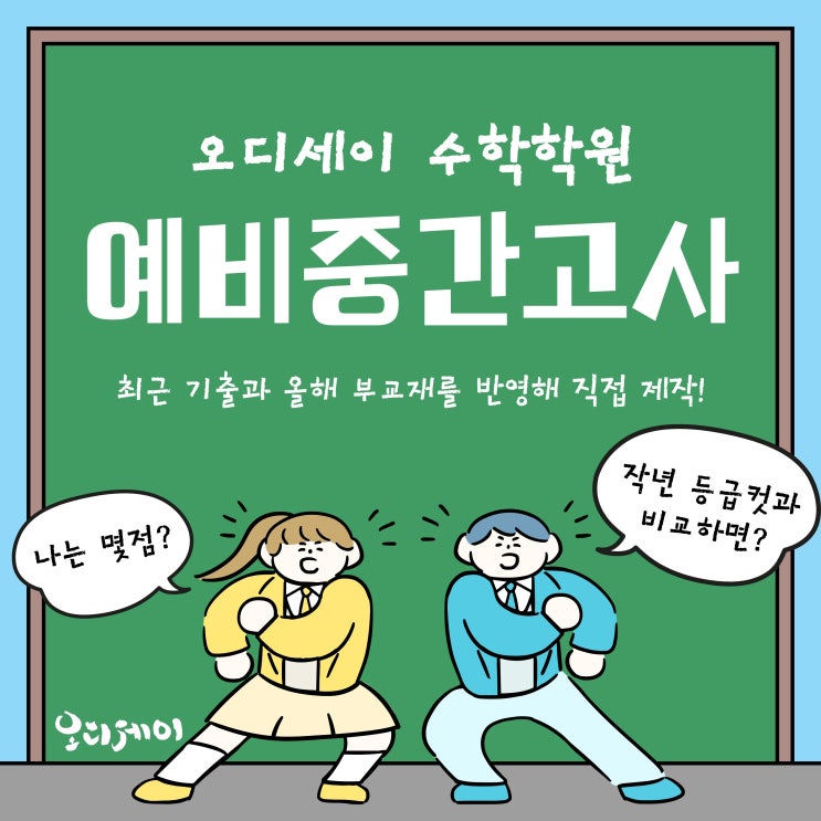 [서대문구 학원/오디세이수학국어] 오디세이 수학수업 명지고 예비고사 안녕하세요 오디세이 학원입니다. 중간고사 준비 잘 하고 계신가요? 이제 일주일 정도 남은 중간고사를 위해 오디세이 수학학원에서는 명지고 예비중간고사를 실시했습니다. 현 명지고 1학년은 작년과 다른 부교재를 사용하고 있습니다. 따라서 작년 기출을 그대로 풀리는 것은 의미없다고 판단, 직접 자료를 만들어 실시했습니다. 최근 2년 기출에서 좋은 문항을 가져오고 올해 부교재에서 문항을 골라 변형문제를 만들었습니다. 이 시험을 응시함으로써 시험시간을 어떻게 배분할지 스스로 결정하고 교과서과 부교재 학습이 얼마나 완료된 상태인지 판단해볼 수 있습니다....... <img src="https://blogthumb.pstatic.net/MjAyNjA0MTdfMTQ1/MDAxNzc2Mzg4Nzc3MDIy.15M546cOkF57YF6R8FwafGNV1kgvlY2dprbQE8vaHOsg.5Z8BWz9ePjhM8WpNwyhQI2wYgUDgQ4iMxzb5BXznJRIg.JPEG/%C1%A6%B8%F1%C0%BB_%C0%D4%B7%C2%C7%D8%C1%D6%BC%BC%BF%E4._%2822%29.jpg?type=s3" />