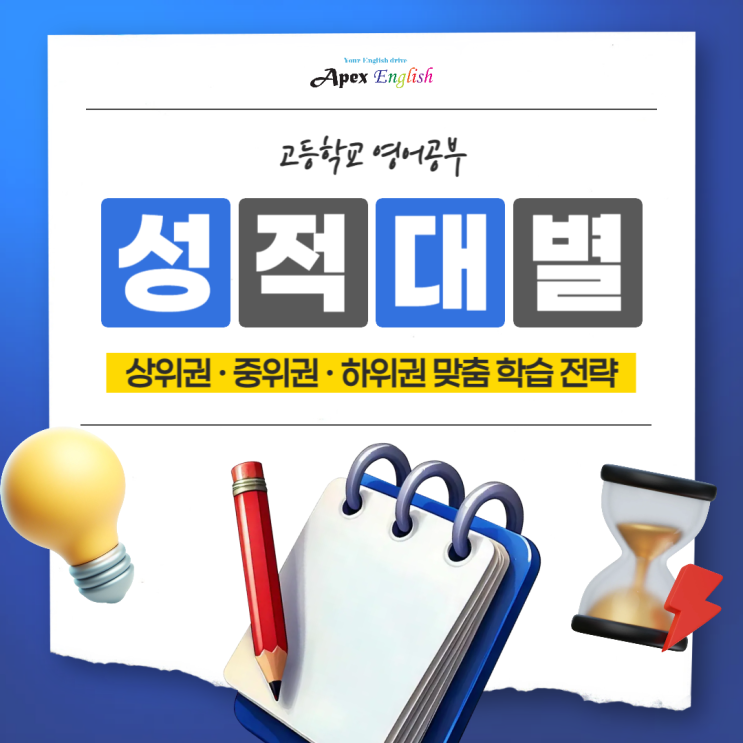 안녕하세요. Your English Drive 상위 1%만의 비밀!✨ 목동 앞단지 영어학원 목동 영어 교육의 프라이드 Apex English 입니다. 고등학교 입학 후 4월이 되면 많은 학생들이 아직 중학교식 공부 습관에서 완전히 벗어나지 못한 상태입니다. 수업은 이해하는 것 같지만 시험 준비를 하려고 하면 어디서부터 시작해야 할지 막막해지는 경우가 많습니다. 특히 영어는 초반 학습 방향이 그대로 성적에 반영되는 과목입니다. 지금 어떤 기준으로 공부하느냐에 따라 첫 시험뿐 아니라 이후 성적 흐름까지 크게 달라집니다. 이번 글에서는 현재 성적 수준에 맞는 영어 학습 방향을 정리해 보겠습니다. 상위권 전략 상위권 학생들은 이미 어휘와 해석 능력....... <img src="https://blogthumb.pstatic.net/MjAyNjA0MTZfNzEg/MDAxNzc2Mjk5NTU0NTkw.oBlzZLAlf1_FmdPDAmwAxe0oqBjbjHelgq34TOETu-Mg.NEhmVWphmRjGddlN4qmF3jvZYEq1vkRv9Gd55lodbCwg.PNG/%B8%F1%B5%BF_%BE%D5%B4%DC%C1%F6_%BF%B5%BE%EE%C7%D0%BF%F8_%281%29.png?type=s3" />