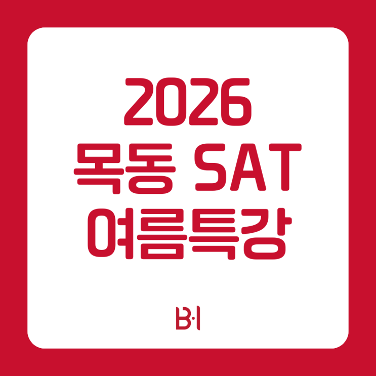 [2026 SAT 여름특강] 청담·대치 1타 강사진, 목동 B.I 어학원 전격 입성! 목동 학부모님들께서 오래 기다리셨습니다. 강남 TOP 전문 어학원의 원장진과 강사진이 B.I 어학원과 함께 목동에 상륙합니다. 단순히 '가르치는' 수업이 아닙니다. '합격을 보장하는' 시스템의 차이를 직접 경험하십시오. 압도적 결과: 26년 3월 고난도 시험 1550+ 고득점자 대거 배출 독보적 자료: 10년 경력진의 적중 분석 & 100% 기출 단어집 완성 드림팀 구성: 하버드·아이비리그 출신 및 명문대 입시 전문가 직강 미친 관리력: 매시간 개별 수업 리포트 발송 & 1:1 전담 TA 밀착 케어 B.I의 SAT 특강을 주목해야 하....... <img src="https://blogthumb.pstatic.net/MjAyNjA0MjBfMTU1/MDAxNzc2NjY5OTgzNTEz.bG3GdFNwlmjPB87VN-q6THryAbAfVoEsO-Mu8rwBU1kg.dqsmntGrdk6fJWjGestnyzjfgyzz6aF9-jxA5OmBnIwg.PNG/2.png?type=s3" />