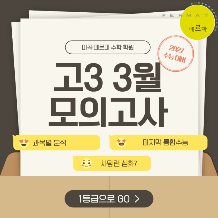 안녕하세요 마곡 페르마 수학 학원 입니다. 오늘은 지난 3월 시행된 모의고사를 분석하도록 하겠습니다. 3월 모의고사는 단순한 첫 시험을 넘어, 앞으로의 수능 흐름을 미리 확인할 수 있는 중요한 기준점입니다. 특히 고3에게는 현재 자신의 위치를 점검하는 동시에, 앞으로의 학습 방향을 설정하는 출발점이 되기도 합니다. 국어 영역은 전반적으로 체감 난이도가 상승한 시험으로 평가됩니다. 특히 독서 영역에서 지문의 길이와 정보량이 크게 증가하면서, 단순한 독해 능력보다 지문의 구조를 빠르게 파악하는 능력이 요구되었습니다. 실제로 학생들 사이에서는 “독서에서 시간이 부족했다”는 반응이 많았습니다. 문학 영역은 비교적 안정....... <img src="https://blogthumb.pstatic.net/MjAyNjA0MTNfMjkz/MDAxNzc2MDc4MDgyMDcy.oqyWpiGQNR7MO4zHfe9_bfI8qbkU3GeEvR1-YYf_ryQg.ucu-LIhzT8Rd92gWDJYbrvE4O4pygONoXnoFnuum_5Qg.PNG/1.png?type=s3" />