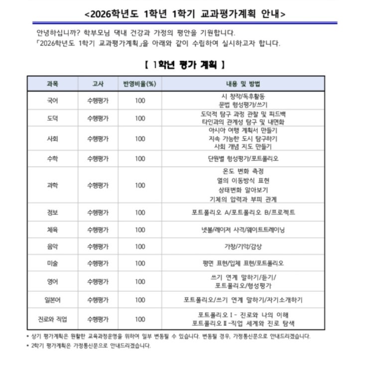 안녕하세요? 연세나로학원입니다. 오늘은 여의도중학교 2학년 1학기 평가 계획을 바탕으로, 수행평가에서 영역별로 2~3점씩 감점(총점 기준 약 5~10점 감점) 되었다고 가정했을 때, 성취도 A(90점 이상)를 받기 위해 필요한 지필평가(중간·기말) 평균 점수를 정리해 보겠습니다. 1. 주요 과목별 목표 점수 (지필평가 중심) 수행평가 비중과 지필평가 비중이 과목마다 다르므로, 본인의 수행평가 예상 감점 폭을 확인해 보면 다음과 같습니다. 2. 과목별 상세 분석 및 전략 지필평가 비중이 높은 과목 (국어, 수학, 과학) 이 과목들은 지필평가 비중이 60%로 높습니다. 수행에서 감점이 발생하면 지필평가에서 반드시 90점대 초반 이상의 점....... <img src="https://blogthumb.pstatic.net/MjAyNjA0MjJfMjMy/MDAxNzc2ODM2ODU4OTQx.6zsdX6dp-W4oPF__ayiBtuQDy--YEniPVI0pwrWqmJQg.Ko1ZUhDT1FcGBTmfoIwbbfyUTaZIo3Llmff_dYisCsUg.JPEG/900_1776836858138.jpg?type=s3" />