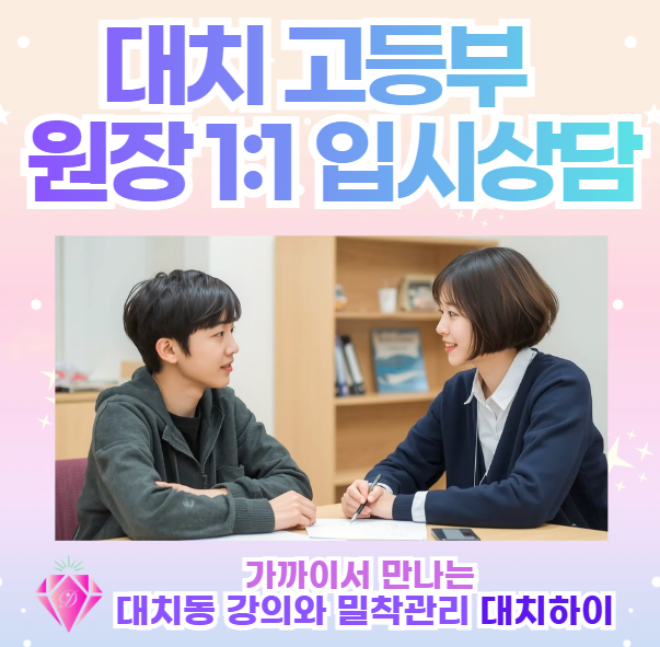 대치하이학원 서울 영등포구 당산로 159 휘선 빌딩 6층 본관 7층 프리미엄관 선유고학원 여의도고학원 영등포여고학원 고등부 1:1입시상담 중간고사후 내신끝나고 기말고사후 중간고사 끝나면 가장 먼저 해야 할 것 대치하이 고등부 입시상담 선유고·관악고·여의도고 영등포여고 재학생 대상 시험이 끝나는 순간, 많은 학생들이 이런 생각을 합니다. "이번 성적으로 수시가 가능할까?" "정시로 방향을 바꿔야 하나?" "남은 학기, 어떻게 해야 하지?" 성적표 한 장을 받아들고 막막해지는 그 순간, 대치하이가 나섭니다! 선유고학원 여의도고학원 영등포여고학원 고등부 1:1입시상담 중간고사후 내신끝나고 기말고....... <img src="https://blogthumb.pstatic.net/MjAyNjA0MjNfMTM2/MDAxNzc2OTQxNTkxMzAw.B1c91lwLA35xQqBefq-J9wR8eiH9Ocfc9vC6-0BY_i8g.0LKAsKsAj-sSLw5w7fGmdOZRO9jzU8iFMTZbWqn_Yuwg.PNG/image.png?type=s3" />