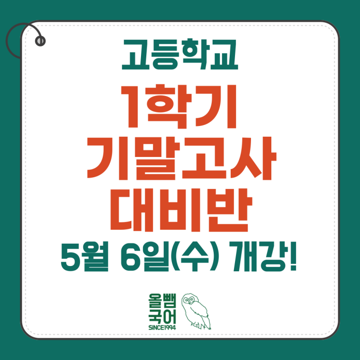 [올뺌국어] 고등부, <1학기 기말고사 대비반>(내신 특강), 5월 6일(수)부터 순차적 개강!