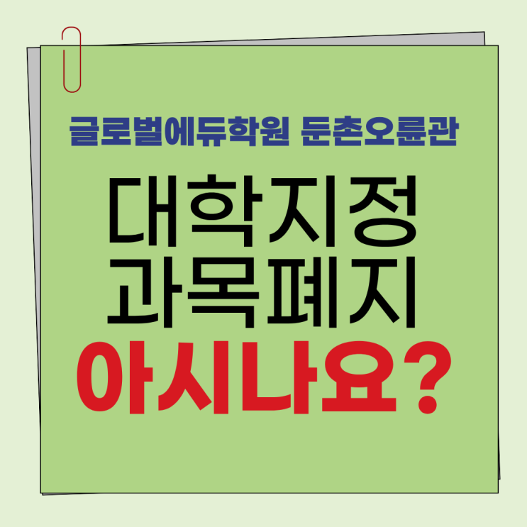 안녕하세요, 글로벌에듀학원 둔촌오륜관입니다! 따스한 4월을 맞아 우리 아이들의 진로 고민도 깊어지는 시기입니다. 최근 대학 입시에서 가장 뜨거운 감자는 단연 '수능 지정과목 폐지'입니다. 기존의 틀을 깨는 파격적인 변화라 학부모님들께서도 혼란스러우실 텐데요. 오늘 이 이슈가 실질적으로 아이들의 성적과 입시에 어떤 영향을 미치는지, 원장인 제가 직접 알기 쉽게 설명해 드리겠습니다. 그동안 자연계열 학과에 진학하려면 반드시 수학의 미적분이나 기하, 그리고 과학탐구를 선택해야만 했습니다. 하지만 연세대, 중앙대 등 상위권 대학들이 이 응시 조건을 폐지하며 큰 변화가 시작되었습니다. 이제는 수학에서 확률과 통....... <img src="https://blogthumb.pstatic.net/MjAyNjA0MjBfMTc1/MDAxNzc2NjU0NzMwNTEx.G6uvkK5QBAEdSeNU00BJlgE_WvfygDQBTpE8FpjLxzkg.Fa3VDAIJd0aY-D6_vuW6KOqWt2bpk0iciEdD2AhjanUg.PNG/%B4%EB%C7%D0%C1%F6%C1%A4%B0%FA%B8%F1%C6%F3%C1%F6_%2810%29.png?type=s3" />