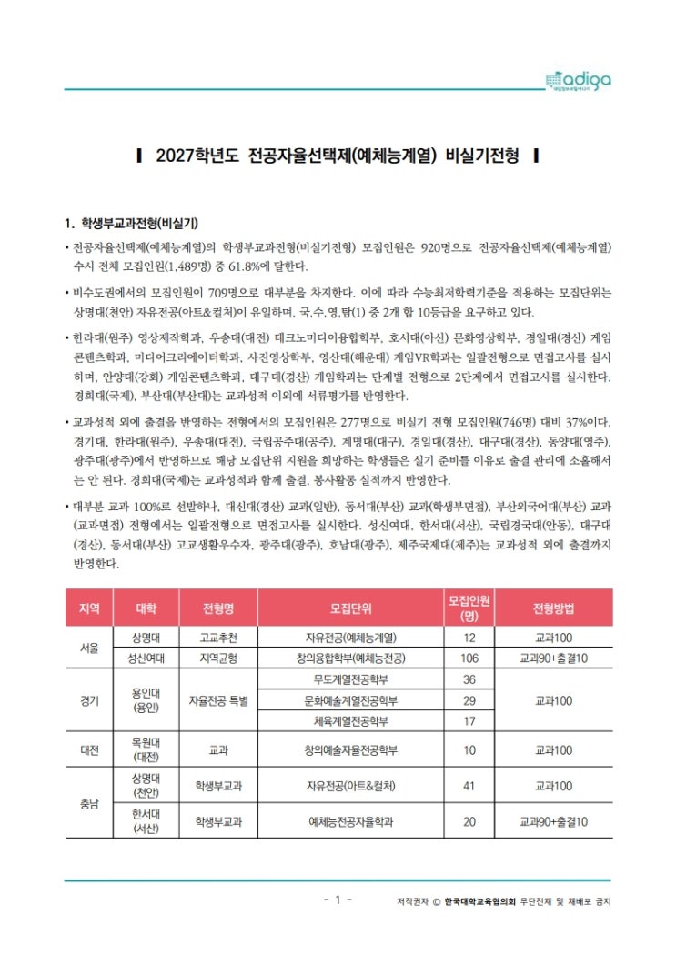 < 2027학년도 전공자율선택제(예체능계열) 비실기 >