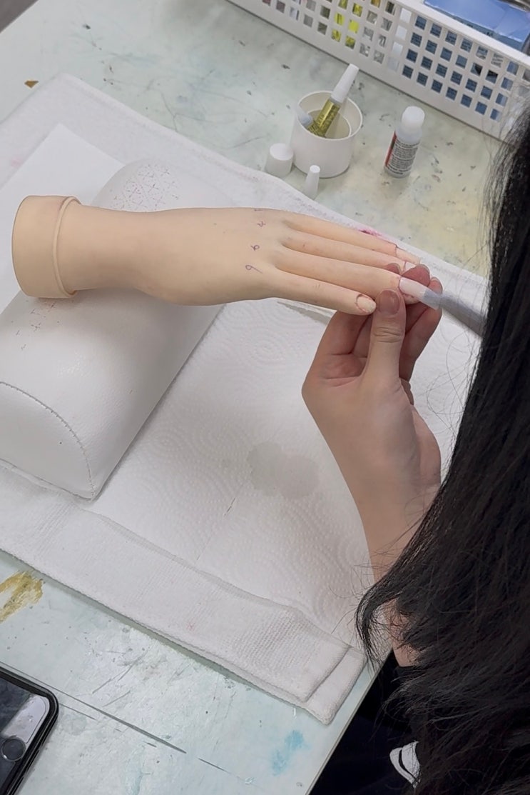 안녕하세요:) 마산kbs아트비전미용학원입니다 목요일이 다가왔네여..흑 다들 공부 열심히 준비하구 있으신가요 오늘은 네일반 소식입니다 3과제 연장 과제에서 종류가 있는데요 팁 위드 랩 젤 원톤 스캅쳐 아크릴 프렌치 스캅 실크 익스텐션 3과제 아크릴 연장 과정(총 40분) 수험자 및 모델 손소독을 해주고 전 과제 폴리쉬 제거 후 쉐입 잡고 표면 정리까지 후 폼지 재단 및 부착을 해줍니다 화이트 파우더와 모노머를사용하여 스마일라인을 만들고 클리어 파우더를 사용하여 네일 베드 채워줍니다 파일로 표면 정리 후 버퍼로 광내주면 끝 3과제 연장 과정(총 40분) 수험자 및 모델 손소독을 해주고 전 과제 폴리쉬 제거 후 쉐입 잡고....... <img src="https://blogthumb.pstatic.net/MjAyNjA0MjNfNzMg/MDAxNzc2OTA4NzcwNjIz.sbOA2KgN1Pg2h0NyeV94FECQo685PmzDNU0ZBf1FY2Ag.k5C2YV39vGI8uSUqWXq8xJZl0SPIDA1V1XOijedL36Ug.JPEG/KakaoTalk_20260423_103335563_03.jpg?type=s3" />