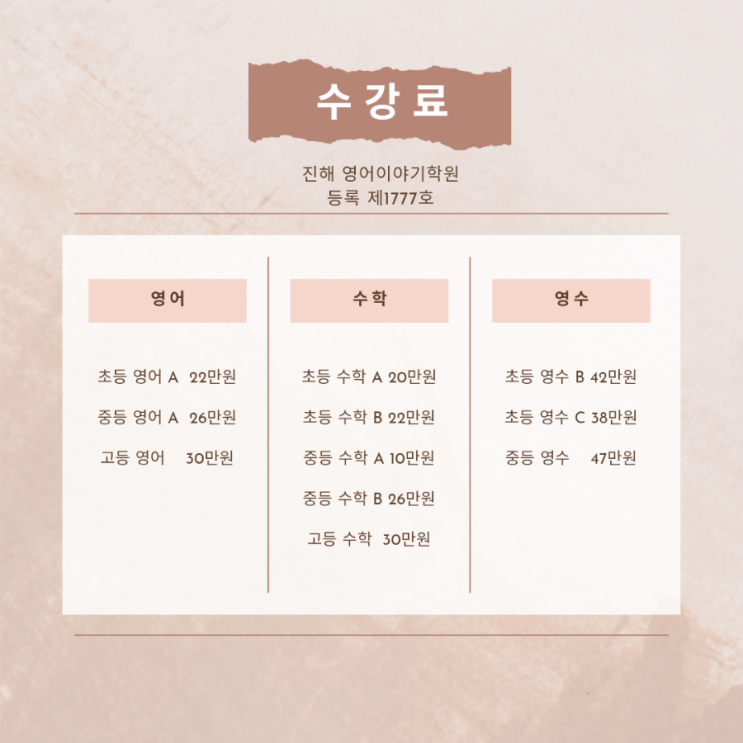 영어이야기 수강료 안내