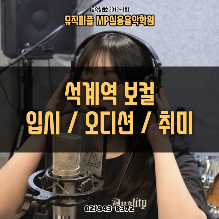 노래하는 즐거움을 넘어, 전문적인 보컬 역량을 키우고 싶으신가요? 교육청 번호 [교육청번호 2012-1호] 석계역에 위치한 저희 뮤직피플 MP실용음악학원은 ● 보컬 입시반 / 취미반 / 오디션반 ● 운영을 통해 여러분의 다채로운 꿈을 지원합니다. 석계역 보컬 입시반 은 전문적인 음악 교육 기관 진학을 목표로 하는 학생들을 위해 마련되었습니다. 체계적인 발성 훈련, 다양한 장르 소화 능력 강화, 그리고 실전과 같은 모의 오디션까지, 합격으로 향하는 굳건한 길을 열어드립니다. 보컬 취미반 은 노래를 통해 삶에 활력을 불어넣고 싶은 모든 분들을 환영합니다. 부담 없이 시작할 수 있는 기초부터 자신감을 심어주는 개별 코칭까지, 노래....... <img src="https://blogthumb.pstatic.net/MjAyNjA0MThfMzIg/MDAxNzc2NDk5MzM2MDUy.kLN08t4b9_8OgMWUU8Moxc_8RGReS4KsN6r4SFTNyDgg.JCwn4TOyNbAUzkiGTgPYuRbWzfq-VYmy9GHmnOUS-fUg.JPEG/900_20260414135016.jpg?type=s3" />