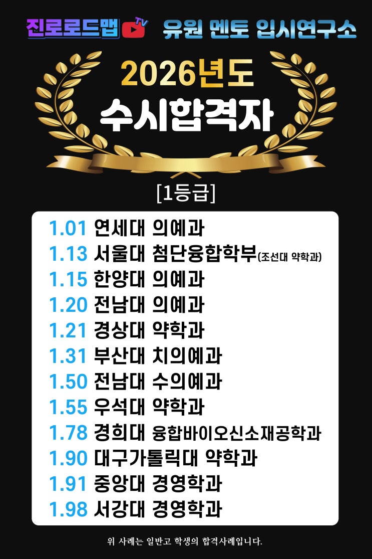 [2026입시결과][의학계열전문컨설팅][연세대의대][한양대의대][전남대의대][부산대치대][서울대첨단융합][연간컨설팅][수시컨설팅][진주입시컨설팅][유원멘토학원][유원멘토입시연구소]