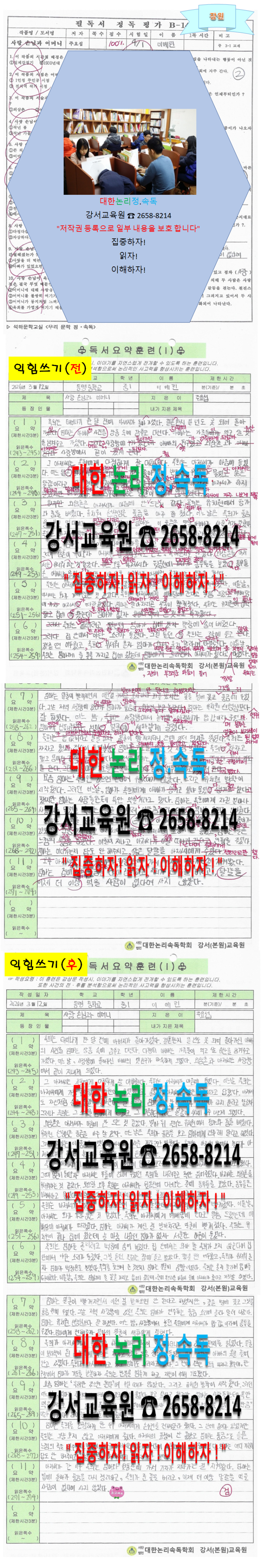 ◎ 3월 부분요약 장원 이예린 『 사랑 손님과 어머니 』[대한논리속독 강서교육원]독서&논술