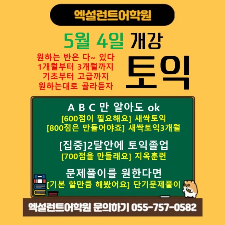 [진주토익학원] 엑설런트어학원 _ 5월 4일 개강안내