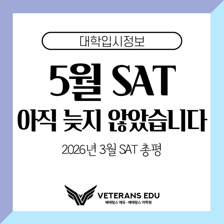 안녕하세요. 15년 연속 국내 국제학교 입시 1위, 베테랑스에듀입니다. 2026 3월 SAT가 끝난 뒤, 학부모님들께 많은 질문을 받았습니다. "이번 시험이 특별히 어려웠던 건가요?" "우리 아이가 유독 흔들린 건가요?" "5월 SAT 전에는 무엇부터 다시 봐야 하나요?" 이번 2026 3월 SAT는 단순히 "어려운 시험"이었다기 보다, 무엇을 먼저 준비해야 하는지 분명하게 보여준 시험이었습니다. 이번 2026 3월 SAT 시험 분석에서 또렷하게 보인 변화는 세 가지입니다. ✔️과학 지문 비중과 난이도 상승 ✔️삼각함수 / pre-calculus 비중 확대 ✔️그래프 / 데이터 문제의 형태 변화 2026 5월 SAT가 이번 주 토....... <img src="https://blogthumb.pstatic.net/MjAyNjA0MjdfMjI1/MDAxNzc3MjczMjM1MjY1.QjnrqBjeZw8Y3_ggmfLKsFzDXYC5ARrb78JLUINKlKMg.FGIp4VgVz1MsvjhXa6D3-g9D32HxU2ZwjCW21nP0Dmgg.JPEG/%C1%A4%BA%B8%BC%BA%B1%DB_%B1%E8%B8%AE%BE%C8_-007.jpg?type=s3" />