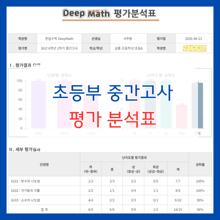 [거제 초등부 중간고사] 딥매쓰 수학 평가 분석표