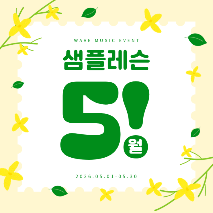 안녕하세요~ 웨이브실용음악학원 입니다!! 오늘은 이벤트를 가지고 왔는데요! 바로바로 ! 무료샘플레슨 이벤트 ! 입니다! 이번달을 맞이하여 무료체험레슨 이벤트를 진행하려고 하는데요, 먼저 선생님도 만나보고 궁금했던 레슨도 한번 받아보고 상담도 먼저 받아보고 학원도 구경해볼 수 있는 시간이에요 : ) 너무 좋겠지요~? 부담은 가지지 마시고! 누구든지 신청이 가능하니 편하신 시간에 신청해주시면 상담을 통해 선생님과 수업 예약일을 잡아 드리겠습니다! 시간은 어느정도 걸리나요? 보통 주 1회 50분 레슨이나, 샘플레슨의 경우 30분으로 체험레슨이 진행됩니다 신청 과목은 어떻게 되나요? 전과목 가능! 보컬,드럼,피아노,기타,베이스....... <img src="https://blogthumb.pstatic.net/MjAyNjAxMDVfMTAg/MDAxNzY3NjAwMzgxNTM2.gEPsEbBWMostIU6X2V3jYEjf2nY2bTfCbar-VegLrakg.YnfeYV5jpz8yfcLf0Bwfsyy3Kt0S1Azg2Uantbx5iR8g.PNG/5.png?type=s3" />