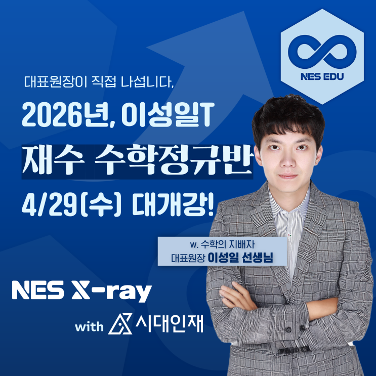 수능까지 남은 6개월, 지금부터가 진짜 승부처입니다. 조급한 마음에 무작정 문제만 풀고 있지는 않으신가요? 수능 수학은 문제의 겉면이 아닌, 출제자의 진짜 의도인 '뼈대'를 봐야만 정답을 찾을 수 있습니다. 2026학년도 수험 레이스의 완벽한 피날레를 위해, NES EDU 이성일 대표원장님이 직접 이끄는 '재수 수학 정규반'이 4월 29일(수) 대개강합니다. 왜 지금, 이성일T의 수학 정규반인가요? "남은 6개월, 끝없이 달려 최상의 결과를 기원합니다." 이번 5월 초 개강하는 '수학 정규 시대비반'은 학생들의 간절한 니즈에 의해 조금 늦게 특별 개강하게 되었습니다. 타겟 및 목표: 현재 모의고....... <img src="https://blogthumb.pstatic.net/MjAyNjA0MjRfMTU3/MDAxNzc3MDAzNjY0MzAw.-iMM8zEJVt4w1RNK63Mvmy7C1sA5BE9KGZEqFtVHaRkg.GnI3-a8g7YmZ46-mSfJazTNijvlSDsEIt3tLAv-UpGYg.PNG/%BD%BD%B6%F3%C0%CC%B5%E51.PNG?type=s3" />