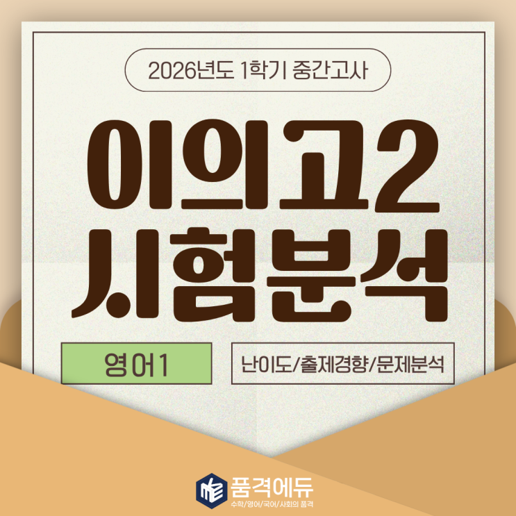 안녕하세요, 품격에듀, 영어의 품격 이의고 영어 전문가 장효선(캐리쌤) 부원장입니다.^^ 이의고 학생들, 시험 치느라 정말 고생 많았습니다~! 이번 이의고2 중간고사 영어시험은 꽤 어려웠는데요. 이의고만 10년째 담당중인 제가 베테랑의 시선으로! 시험분석을 해보겠습니다. 분석전에..! 이의고1도 객+논 만점자있습니다(자랑ㅎㅎ..) 수능형 문항들을 뚫고 객관식에서 단 하나도 틀리지 않았다는 건, 저와 함께 지문의 논리 구조를 완벽하게 파악했다는 증거! "쌤이 나온다고 한 거 다 나왔어요!"라는 아이들 덕분에 제가 이의고를 10년째 못 떠납니다^.^ 그럼, 진짜 시험분석 시작합니다! 시험 총평# 이번 이의고 2학년 영어 시험....... <img src="https://blogthumb.pstatic.net/MjAyNjA0MjNfMjMg/MDAxNzc2OTI1NDgxMjM1.IzNw3cZrlbOnAAJIpbpzxtZOFqjjDI6pCvbcRP9oQxAg.eXdSkv3mc4ur9k-7YBZ5SPQCtJBox_jcK3WprK9C8V8g.PNG/4.png?type=s3" />