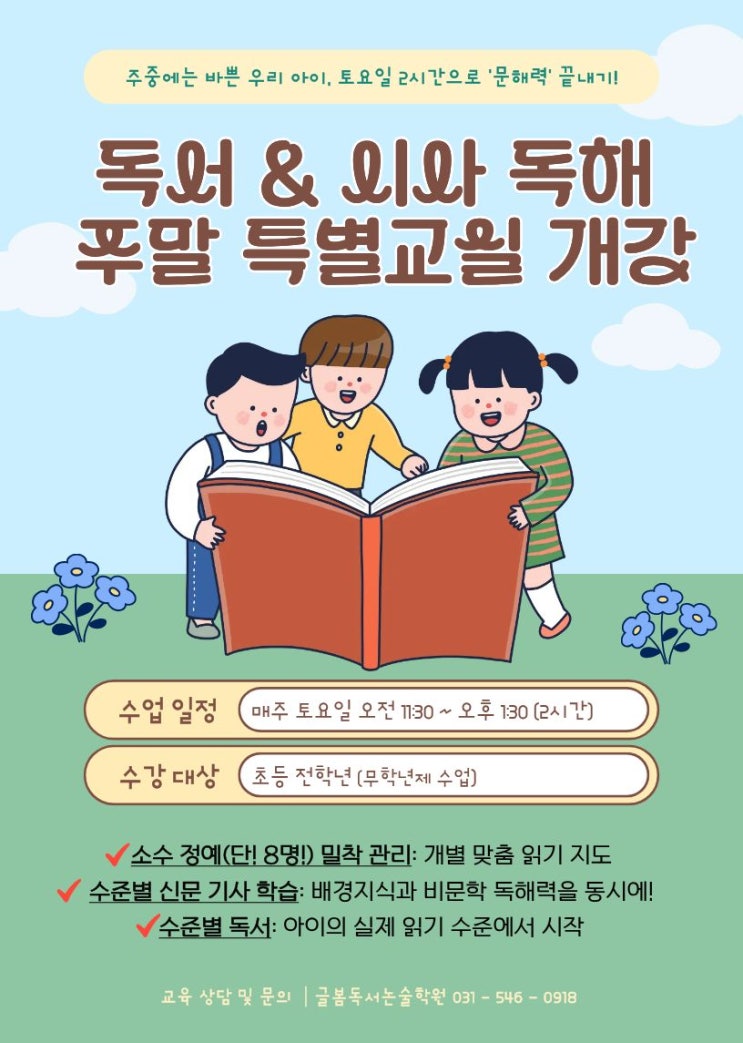 [광교국어논술학원] 평일엔 시간이 없는 우리 아이, 토요일 2시간 '문해력 골든타임'을 잡으세요!