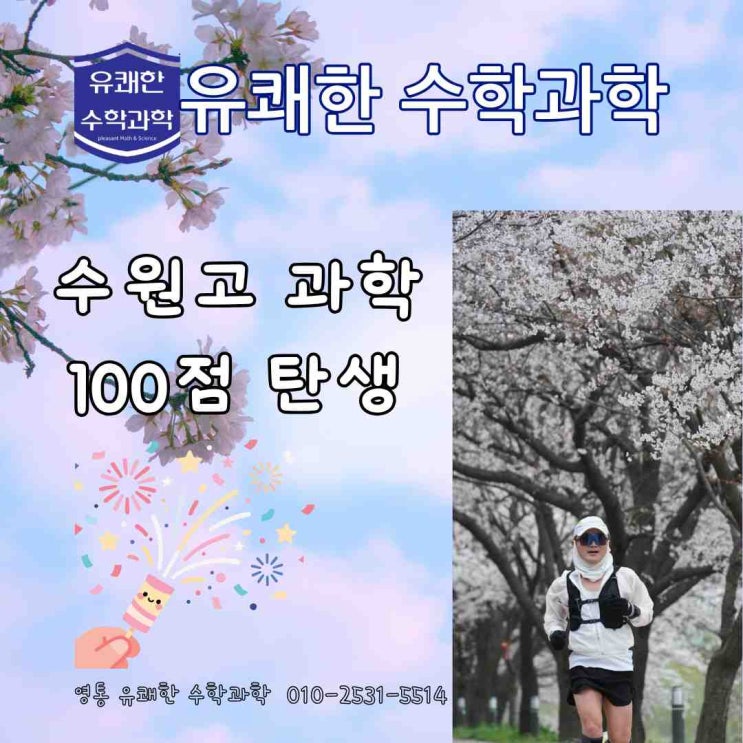 수원고1 과학 100점, 수원고2 물리·화학 만점 만든 공부법 - 수원고 과학학원 유쾌한 수학과학 수원고 과학학원 찾는다면, 결과로 증명합니다 안녕하세요. 영통동에 위치한 유쾌한 수학과학학원입니다. 이번 중간고사에서 정말 기쁜 소식이 있었습니다. 학생들이 스스로 만들어낸 값진 결과라 더 의미가 큽니다. 수원고1 양인혁 학생, 과학 100점 달성! 양인혁 학생은 중학교 시절 과학 최고점이 80점대였던 학생입니다. 중2부터 학원을 다니기 시작해 기초를 다지고 꾸준히 유쾌한과 함께한 인혁이~~ 고등학교에서도 꾸준히 방향을 잡고 공부한 결과, 이번 수원고1 과학 시험에서 100점을 받았습니다. 단순히 운이 좋았던 시험이 아닙니다....... <img src="https://blogthumb.pstatic.net/MjAyNjA0MjNfMjk5/MDAxNzc2OTI2NjA3ODA0.aOKWSIUd_KssiDZXWzkVkJ4GhgKFws5tBvVQOer012Ig.rOgjsvqdz1pkYuQirgAA41H5evBMHZGpcRkpr4Ccfp8g.JPEG/1.jpg?type=s3" />