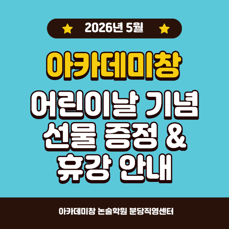 [분당 수내동 아카데미창 논술학원] 5월 어린이날 서프라이즈 선물 증정 & 주요 학사 일정 & 신규 개설반 안내