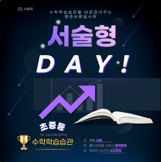 수학학습습관 제대로 잡아주는 평촌 바른길수학 학원입니다.! "수학을 단순히 잘 푸는 것만 강조하는 것이 아닌 풀이과정을 정리해 가면서 본인의 생각도 서술하고, 그 생각을 바른 글씨로 표현할 수 있도록!" 평촌 바른길수학 초, 중등부는 수학학습습관 잡기! 집중하여 지도하고 있습니다. 오늘은 서술형DAY 26년 4월 우수학생을 소개합니다. 덕현초 5학년 이O현 덕현초 5학년 조O준 한얼초 5학년 권O솔 귀인초 6학년 박O형 의왕초 6학년 윤O범 범계초 6학년 천O원 평촌중 1학년 이O은 부안중 1학년 이O영 평촌중 1학년 현O우 귀인중 1학년 김O안 귀인중 1학년 윤O엘 대안여중 1학년 이O연 연현중 1학년 이O재 중2, 중2은 중간고사 기....... <img src="https://blogthumb.pstatic.net/MjAyNjA0MTdfOTMg/MDAxNzc2NDA4MDM5MTQ4.WV4hpjQ_s6j51xk3wCw1mxyROrBh9mlhb0bTS3pcj5Ug.cGAhidl3318LogHKpxjRR-CIQ9fkjQ1kOrwjWiWxRXYg.PNG/%BC%AD%BC%FA%C7%FC%B5%A5%C0%CC-%B4%EB%C7%A5%C0%CC%B9%CC%C1%F6.png?type=s3" />
