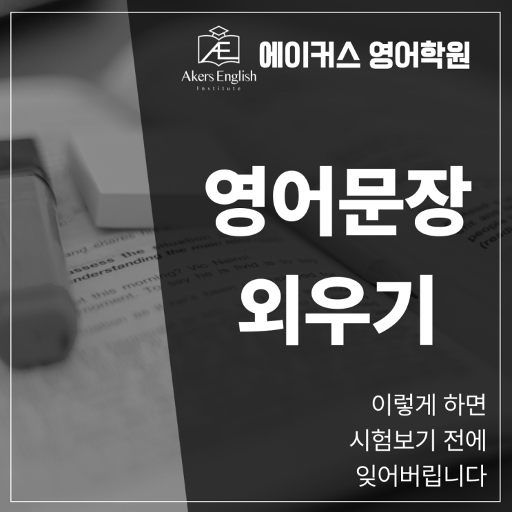 영어문장 외우기 이렇게 하면 시험보기 전에 잊어버립니다. 목차 Ⅰ 문장을 외워도 금방 잊어버리는 이유 Ⅱ 문장 하나로 다른 문장을 연상하는 법 Ⅲ 잊지 않기 위한 스피킹과 라이팅 Ⅳ 자신감이 중요한 이유 Ⅴ 영어를 이해하는 과정 Ⅰ 문장을 외워도 금방 잊어버리는 이유 안녕하세요. 에이커스 영어학원입니다. 영어문장외우기 방식에서 기억이 오래 유지되지 않는 이유는 문장을 단어 단위로 분절해 받아들이면서 의미 단위가 아닌 파편 정보로 저장되기 때문입니다. 이때 청킹 개념이 중요한데 문장을 의미 덩어리로 묶어 이해하지 않으면 기억은 분산되고 시간이 지나면서 자연스럽게 소실되는 구조가 반복됩니다. 또한 문장이 사용되는....... <img src="https://blogthumb.pstatic.net/MjAyNjA0MjJfMjI1/MDAxNzc2ODMyNDk1ODg0.AhcxZxg4mIRqcofYyPaMH9VhiaoVa3Z9FHdEsJNu-O0g.wSlTtc3BIXJqAtsKvotioXidNrdZTyQgMbUBmb8m6b8g.PNG/001.png?type=s3" />