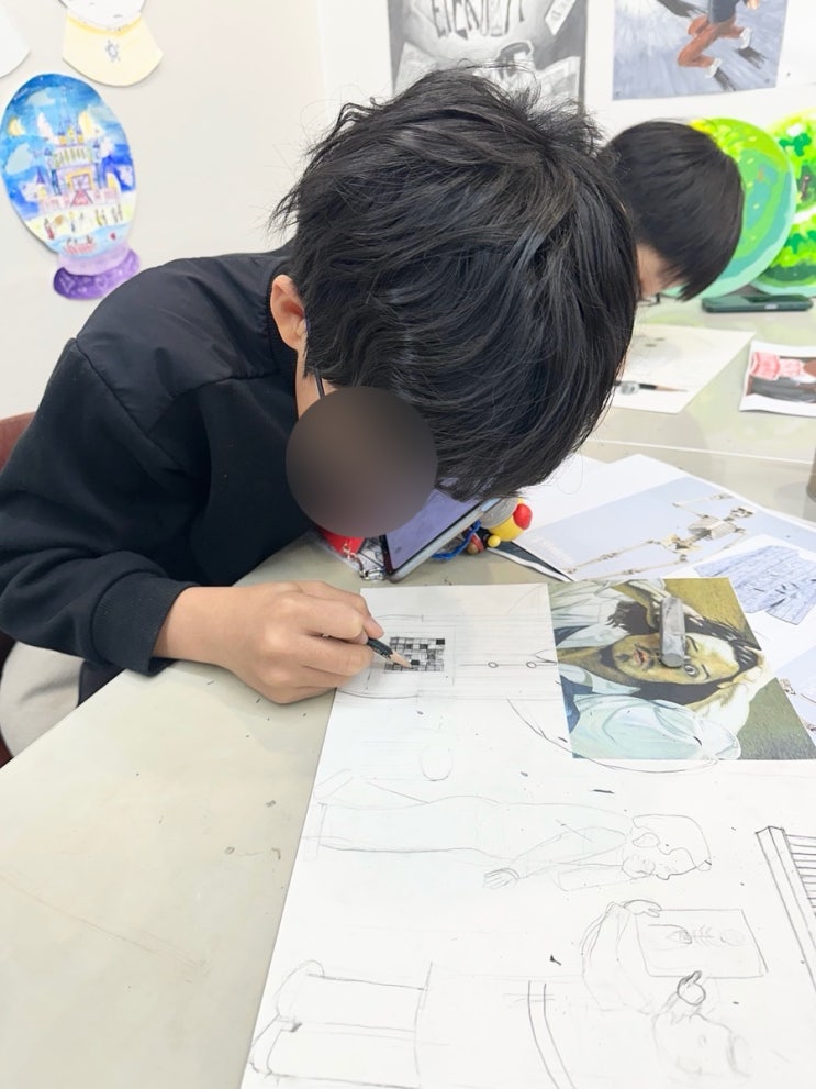 이번 수업은 아이들이 좋아하는 명화를 재해석하는 콜라주 & 드로잉 수업으로 진행했어요 단순히 그림을 따라 그리는 것이 아니라, 명화를 바탕으로 자신만의 이야기를 만들어 표현하는 활동이었답니다. 아이들은 다양한 명화 속 인물과 장면을 관찰한 뒤, 그림을 오려 붙이고, 직접 그린 그림과 연결해 새로운 장면을 완성했어요. ✂️ 관찰 → 상상 → 표현 수업의 핵심 포인트! ✔️ 명화 속 인물의 표정과 분위기 관찰하기 ✔️ ‘이 다음 이야기는 어떻게 될까?’ 상상해보기 ✔️ 나만의 캐릭터와 배경을 더해 새롭게 구성하기 이 과정을 통해 아이들은 단순한 모사가 아니라 창의적인 스토리텔링 능력과 표현력을 함께 키울 수 있....... <img src="https://blogthumb.pstatic.net/MjAyNjA0MjhfMTY4/MDAxNzc3MzM5ODI1OTE3.aKjALLmieMIZOAHbUIBGxp_En8s4K95-G4WkJIRdRu8g.0vmYF7NaCx_VHQwPhRe3HULEeA_bVbVgYQk756CHXO4g.JPEG/output%A3%DF77377129.jpg?type=s3" />