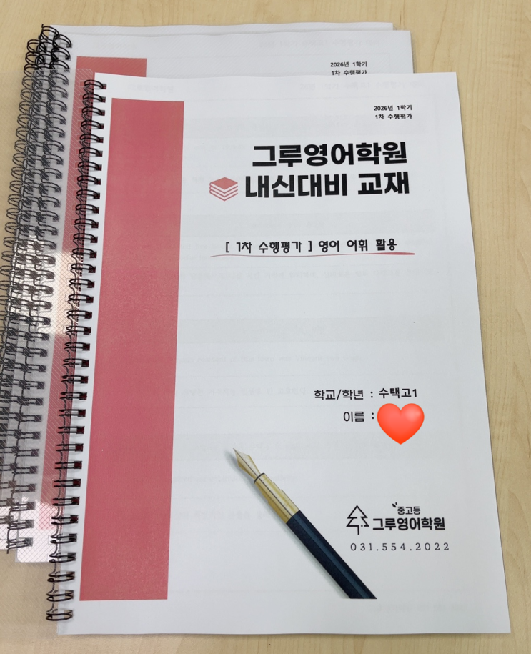 안녕하세요 그루영어학원입니다! 이번 수택고 1학년 26년 1학기 1차 어휘 수행평가는 범위가 상당히 많았습니다. 100여개의 문장을 숙지하고 195개의 어휘 의미 및 철자를 모두 숙지해야합니다. < 수택고 어휘 1차 수행 출제 유형 > *단어: 우리말 뜻 쓰기 & 단어 스펠링 출제 *문장: 빈칸 넣기 & 단어 순서 배열 그루영어학원에서는 학생들이 어휘 수행평가를 잘 대비할 수 있도록 자체 교재를 따로 제작하여 수업을 진행하였습니다. 특히, 시험범위에 해당하는 문장들이기에 막연히 암기하는 것이 아닌 문장 구조를 파악하며 의미있게 학습할 수 있도록 지도하였습니다^^ 1. 단어의 의미와 철자를 정확하게 숙지하기 2. 문장의 구....... <img src="https://blogthumb.pstatic.net/MjAyNjA0MTdfMTQg/MDAxNzc2NDE5NjI3NjMz.PKs9NfltDeF42AaRiJ5K1fPKjNOXNFNUVXtspGm3lIMg.YzFvpq_bxHaD30RAgZhlGVNcZkVy1apJOuy4QNqd-Rgg.PNG/image.png?type=s3" />