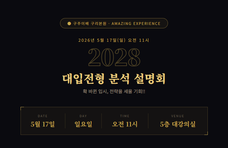 [구리구주이배] 2028대입전형분석 및 고2,고1 대입전략 설명회_5/17(일) 오전11시